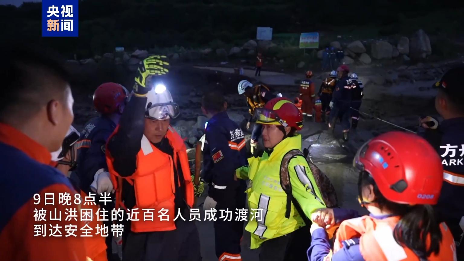 9日晚8点半,被山洪困住的近百名救援人员成功渡河,到达安全地带。10日下午,通往旧庄沟村的行车道已抢通,物资通道已恢复。